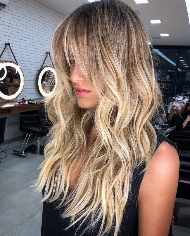 Другим за популярністю трендом, який вибирають шанувальниці довгих локонів, є довгі стрижки з подовженою чілкою трохи вище куточків рота або на рівні підборіддя, що чуттєво укладається на дві сторони.