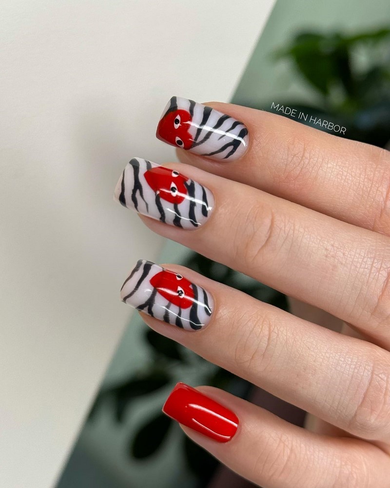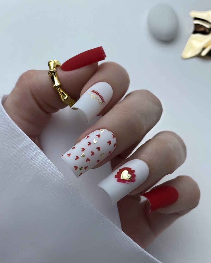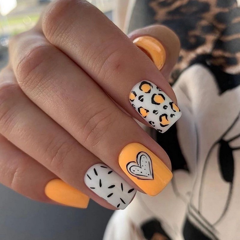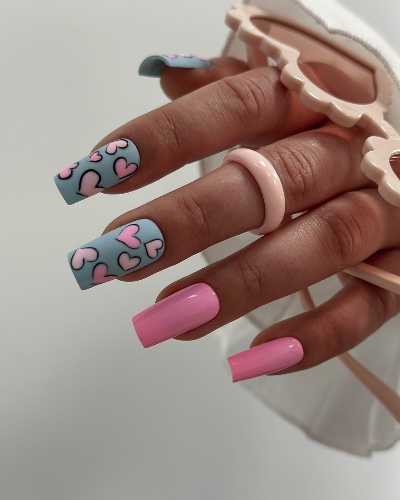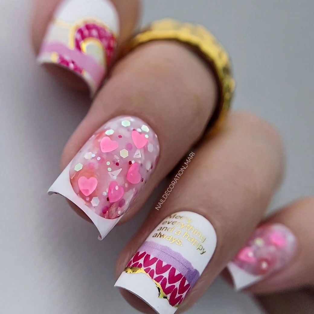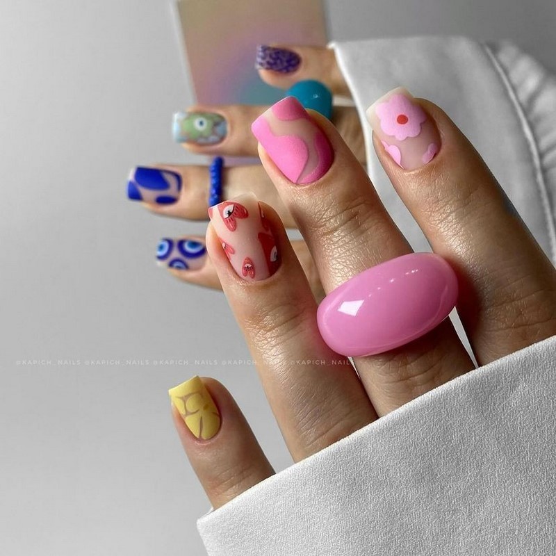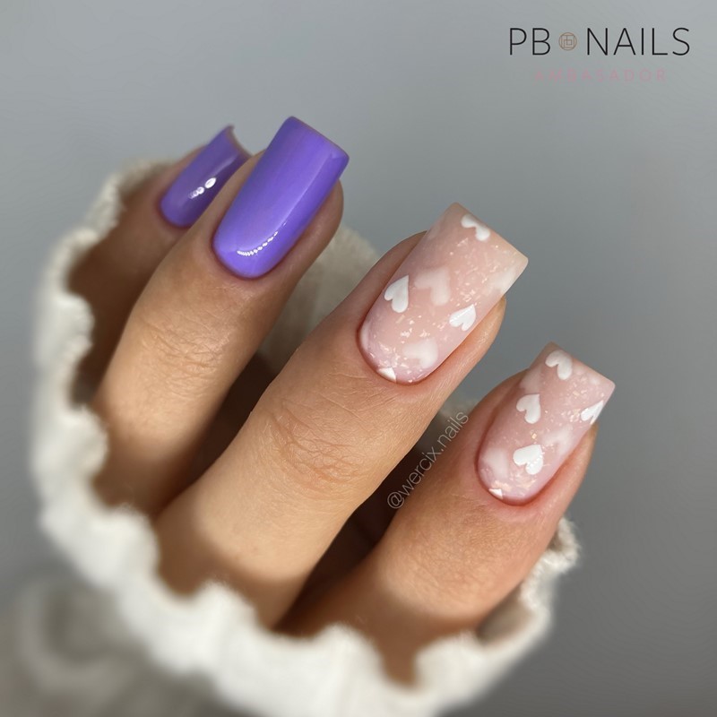 Гра з формами та кольорами — ще один тренд 2025, який дозволяє зробити манікюр з сердечками унікальним. Сердечка можуть бути асиметричними, розмитими або складатися з різнокольорових мазків. Такий дизайн додає оригінальності та сміливості.