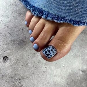 Стримано модний лео-принт виглядатиме у тандемі із сірим відтінком. Сірий леопардовий дизайн часто вибирають не тільки для манікюру, але і для педикюру.
