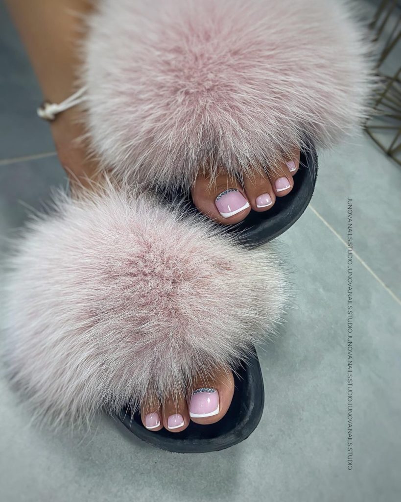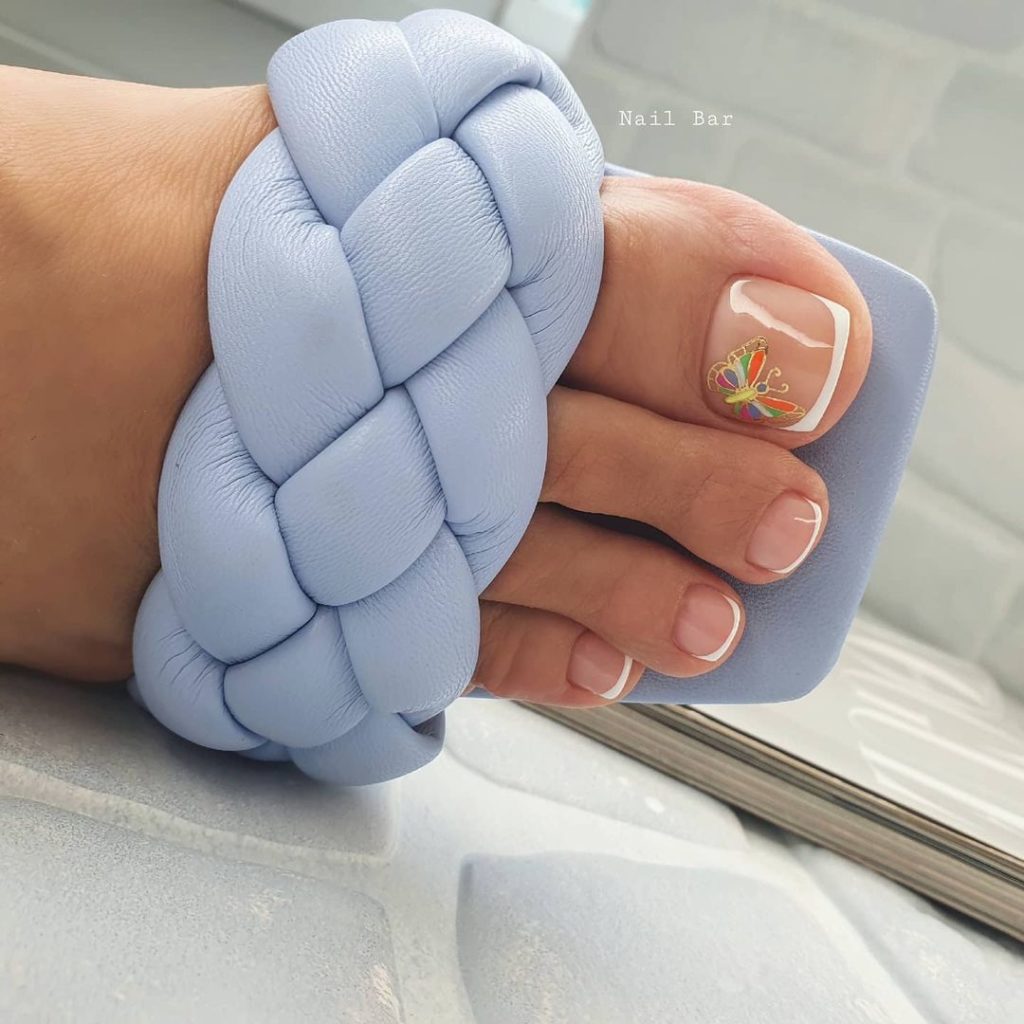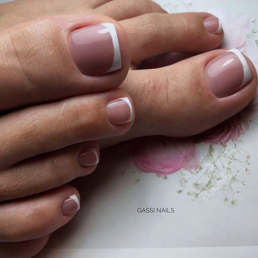 У нейл-трендах дизайну педикюру 2025 особливе місце закріпилося за френчем. Класичний френч, як і «лунний» дизайн не можуть залишатися без уваги, оскільки це завжди доречний, оригінальний, елегантний варіант педикюру. Якщо лунку досить виділити на великому пальці, то френч краще робити відразу на всіх, особливо в класичному білому виконанні.
