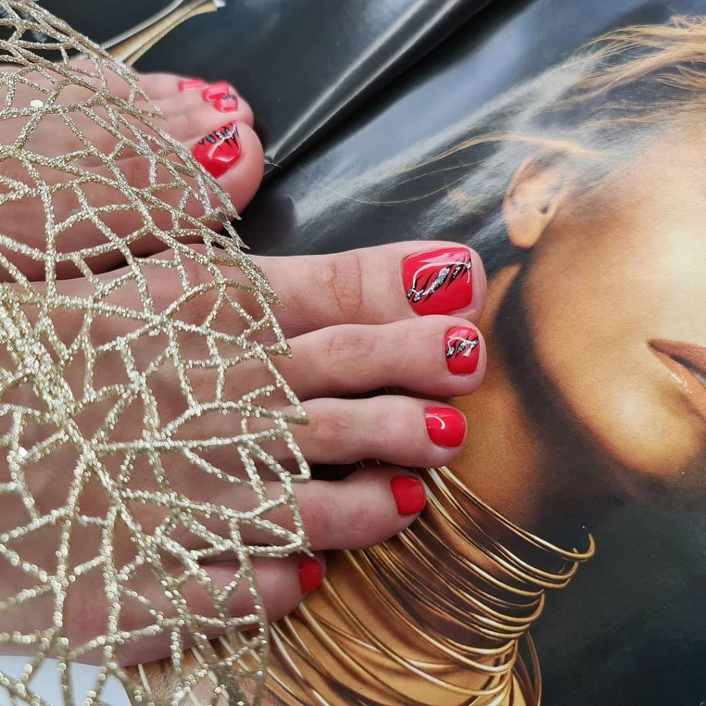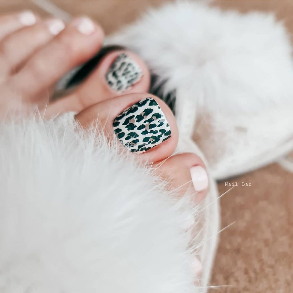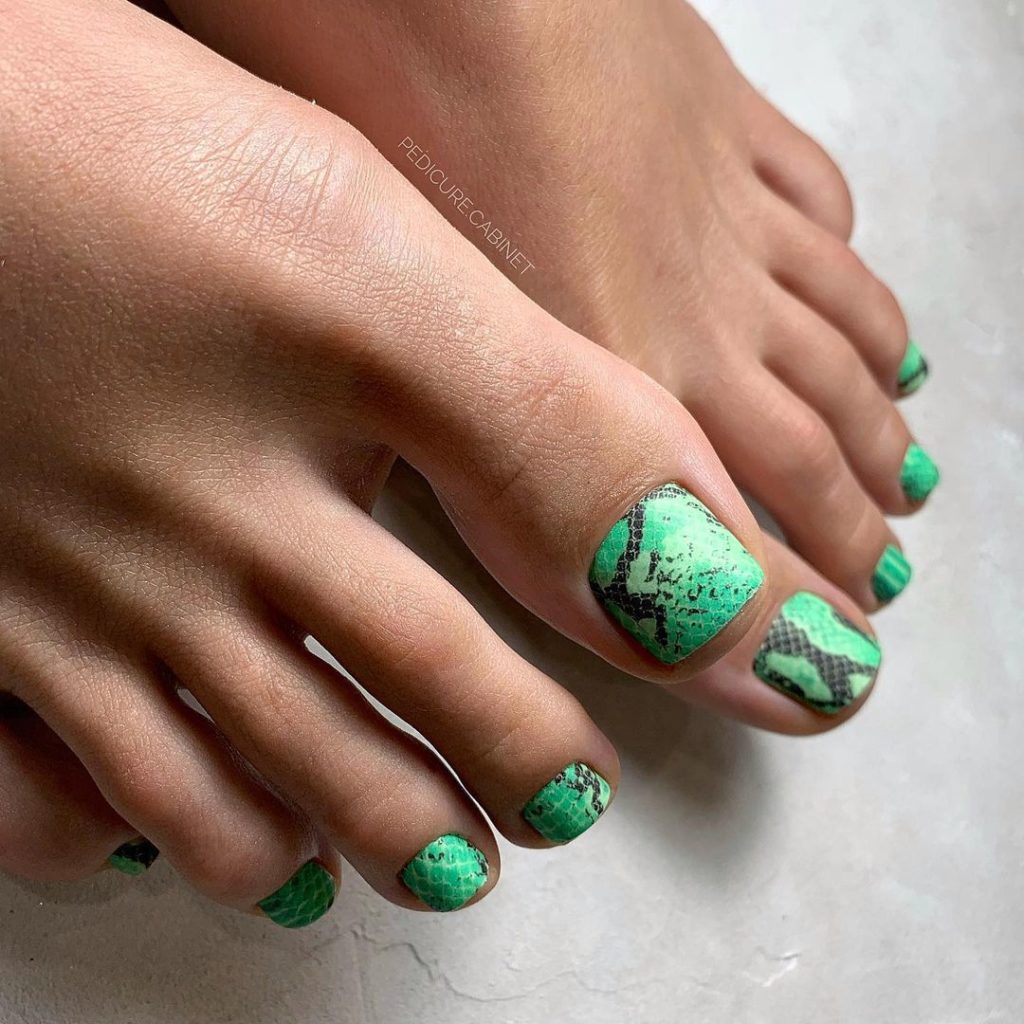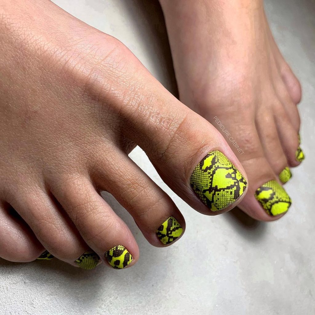 Якщо в манікюрі анімалістичний принт у вигляді леопарда і пітона залишився недооціненим, то в педикюрі 2025 обидва варіанти дизайну залишаються актуальними і популярними. Досягти ідеального візерунка в такому випадку допоможе стемпінг, наклейки і слайдери.