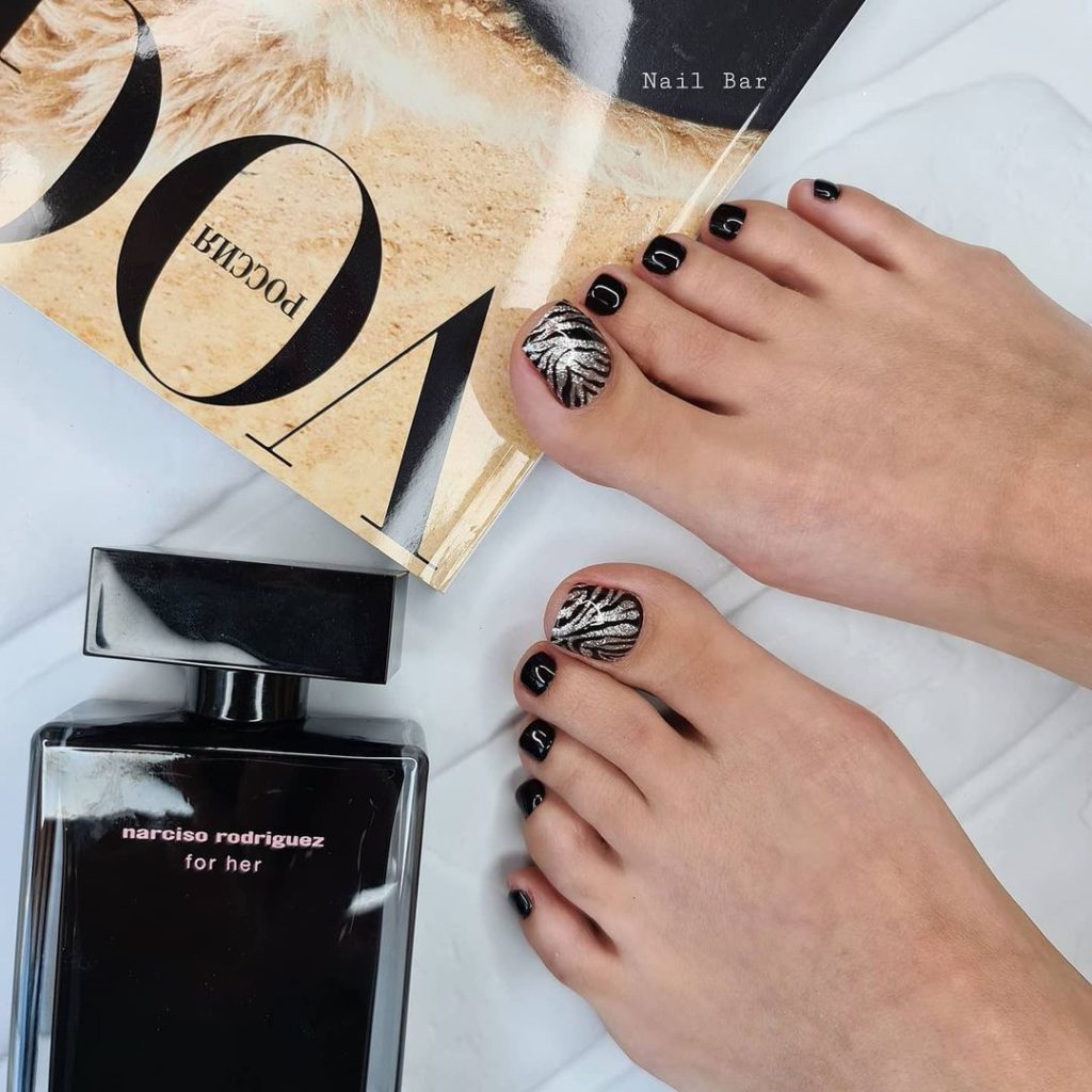 Хотілося б виділити в новому сезоні модний білий і чорний дизайн педикюру 2025. Разом або окремо чорний і білий кольори безсумнівно виглядають стильно і по-своєму ефектно. Обидва трендових варіанти педикюру будуть актуальні як для зими, так і для літа.