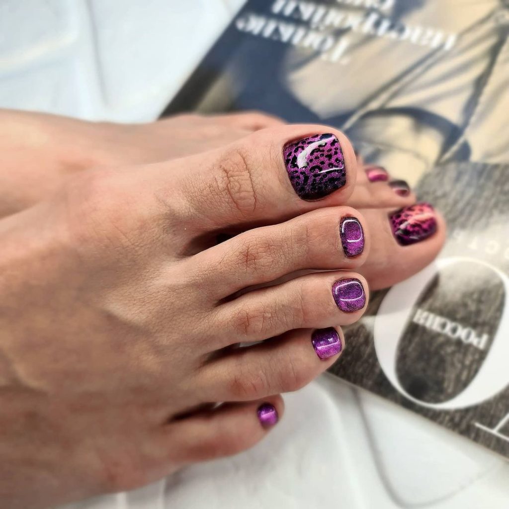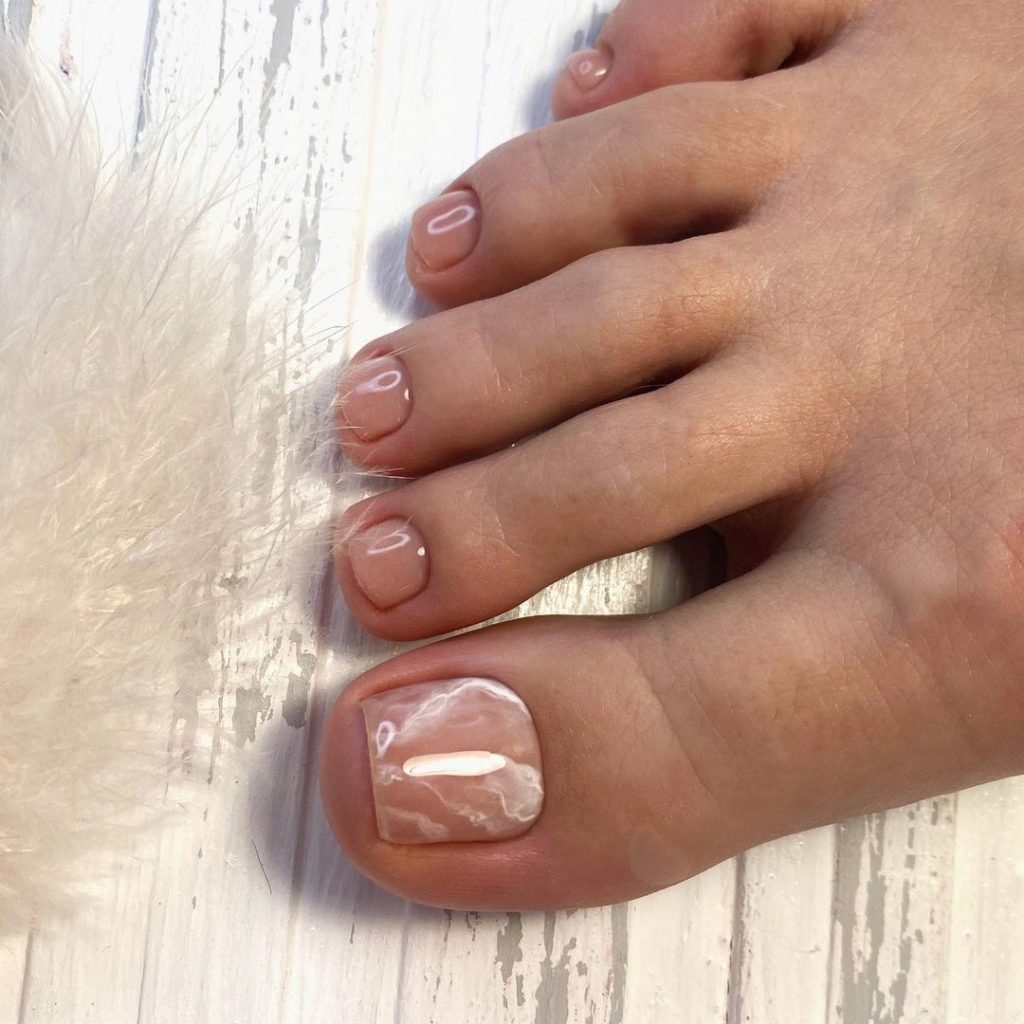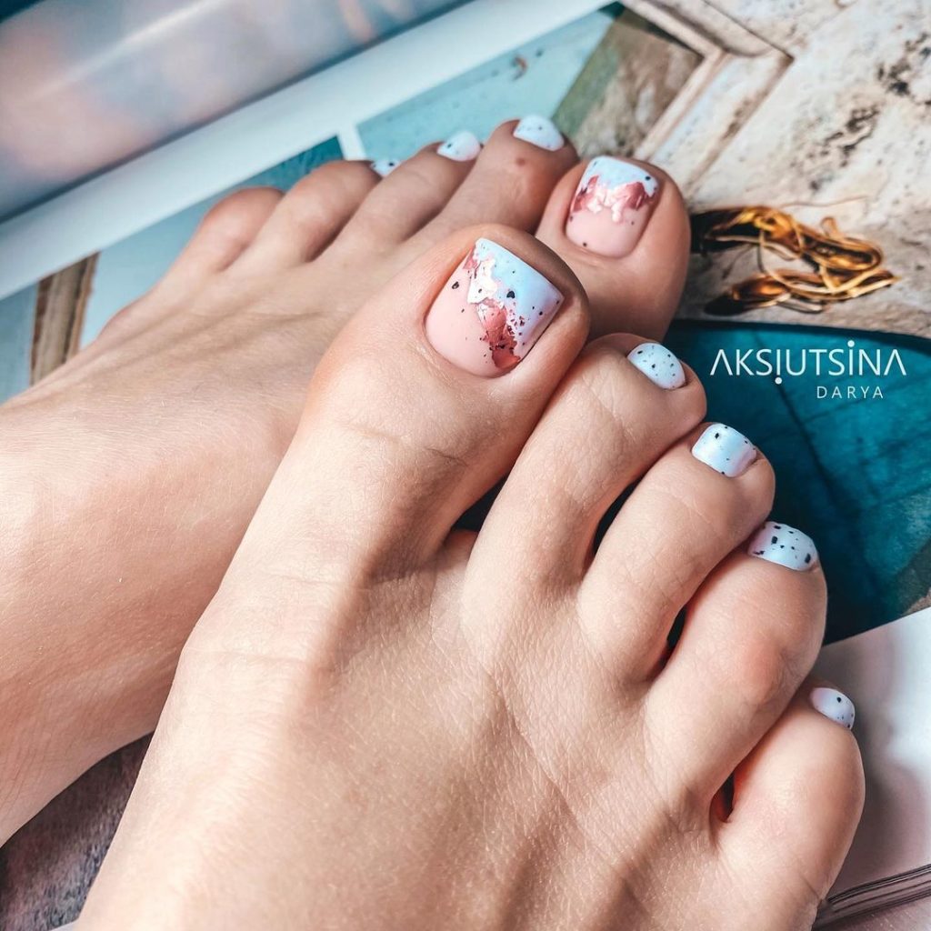 Дуже красивим і неповторним дизайном для педикюру 2025 залишаються кольорові текстури. Адже крім морської хвилі, в техніці з розводами виходить чарівний мармуровий дизайн. Трендовими залишаються і варіанти текстур в одній палітрі кольорів, так і контрастні сміливі поєднання відтінків.