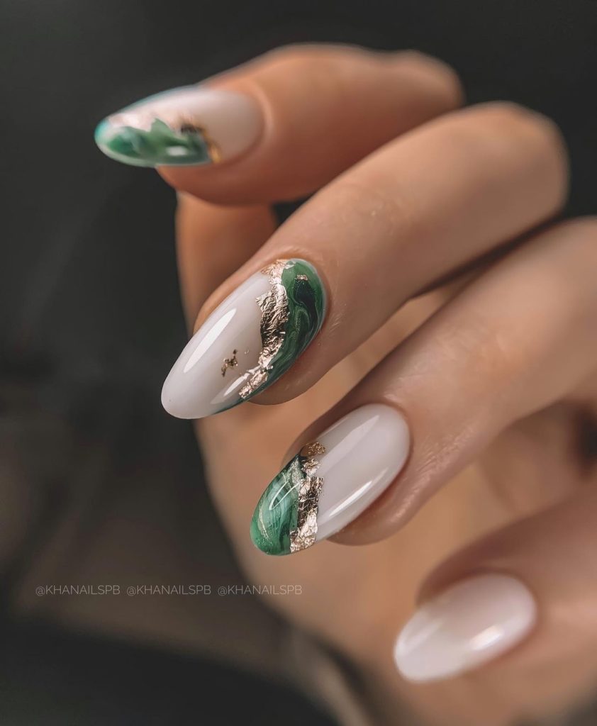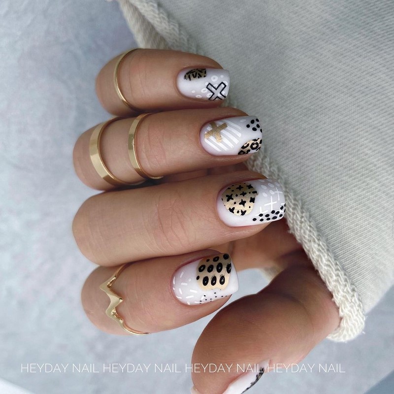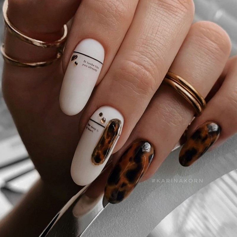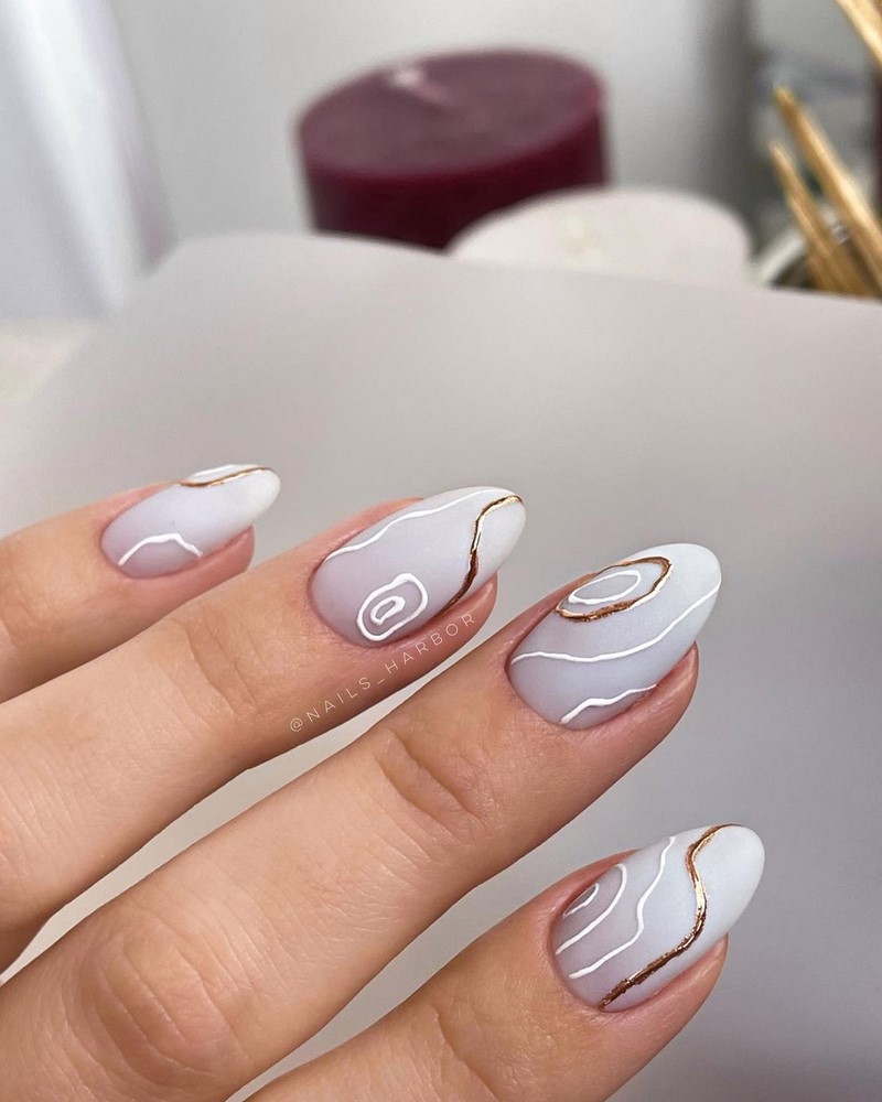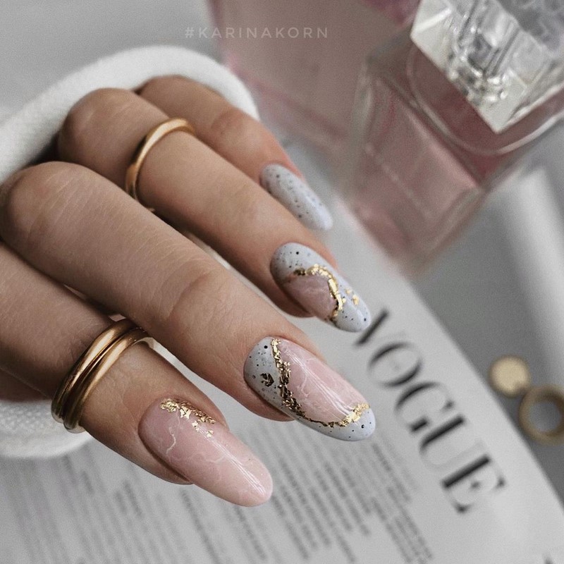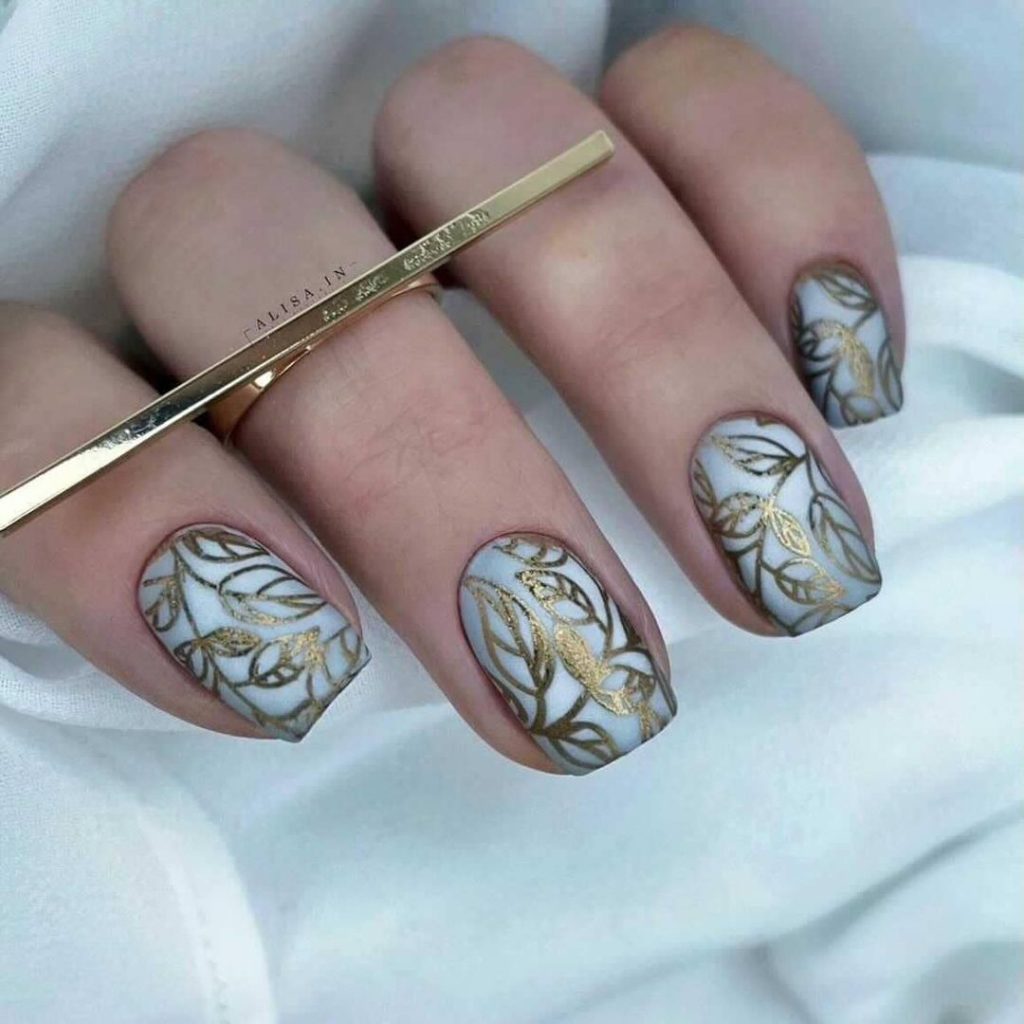 «Не все, що блищить це золото», хоча в нашому випадку якраз-таки навпаки. У модному манікюрі 2025 будь-які натяки на золото актуальні і надзвичайно популярні. Найбільш часто в дизайнах сучасного манікюру зустрічається золота поталь і фольга, які відмінно поєднуються з мінімалістичними малюнками і абстрактною павутинкою.