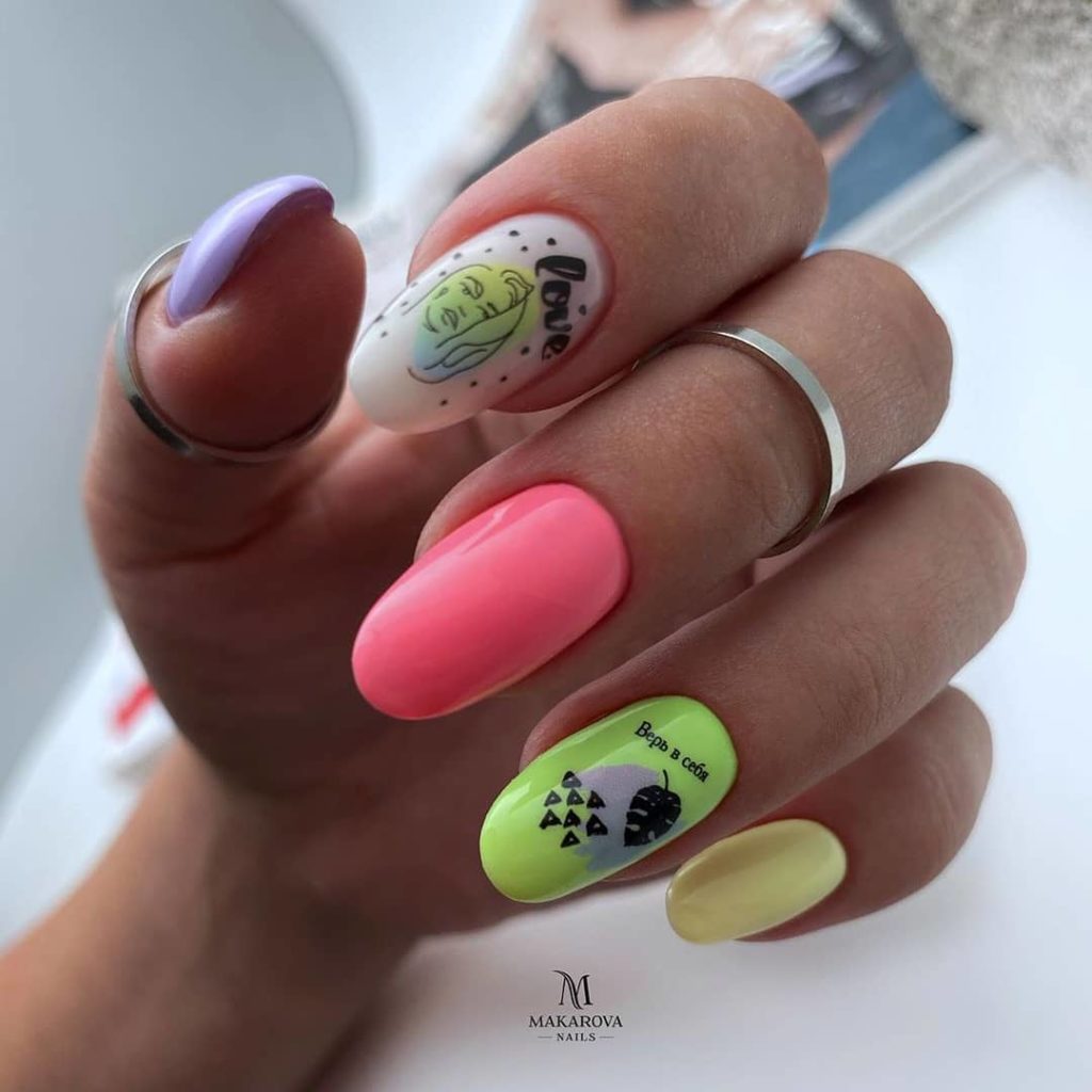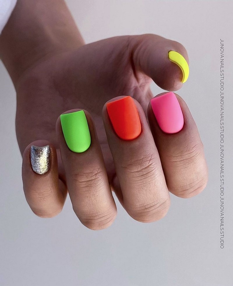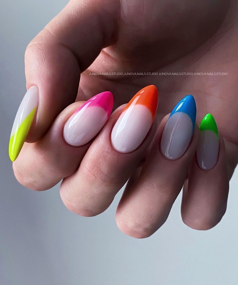В такому різнобарвному стилі популярними будуть не тільки ідеї манікюру в монохромі на пальці, а й френча, дизайну з негативним простором і навіть з градієнтами. Ці та інші варіанти модного манікюру дивіться на фото прикладах останніх робіт від нейл-майстрів.