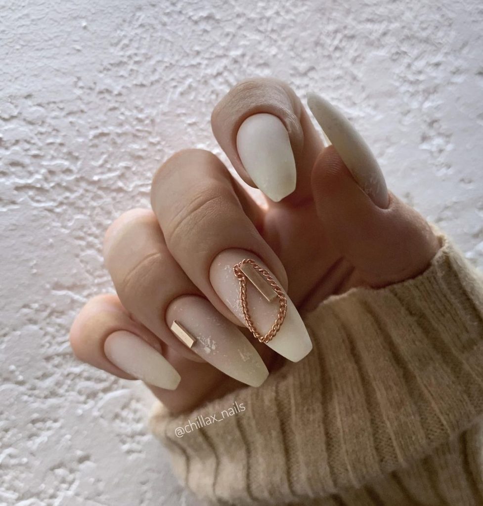 Скільки шику, чарівності, індивідуальності і елегантності можна отримати від такої маленької деталі в дизайні нігтів як невеличка металева прикраса. Модний манікюр 2025 з декором у вигляді металізованого дроту, ланцюжка, акуратної фігурки-брошки, кульок або заклепок, здатний викликати захоплення навіть у заядлих перфекціоністок.
