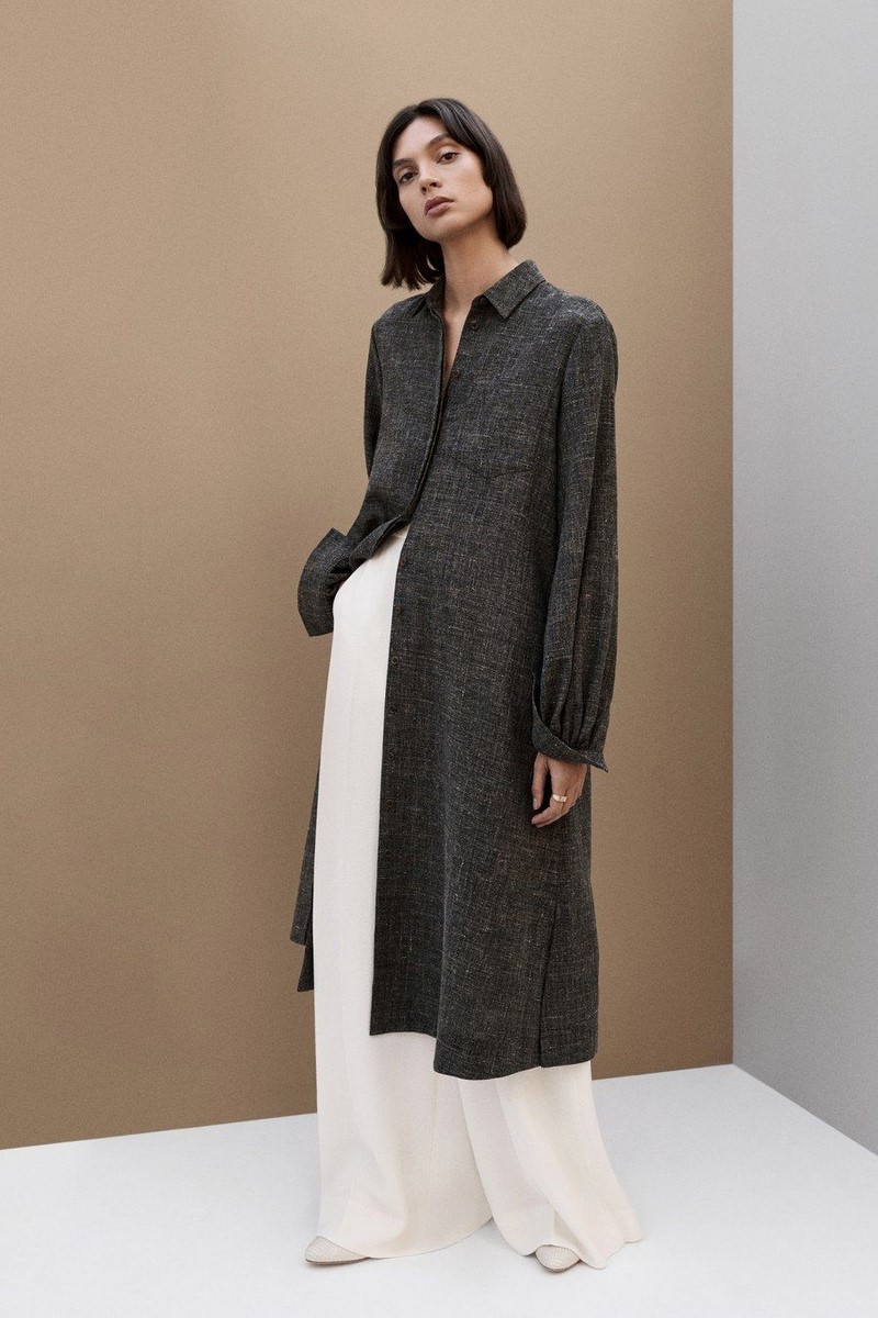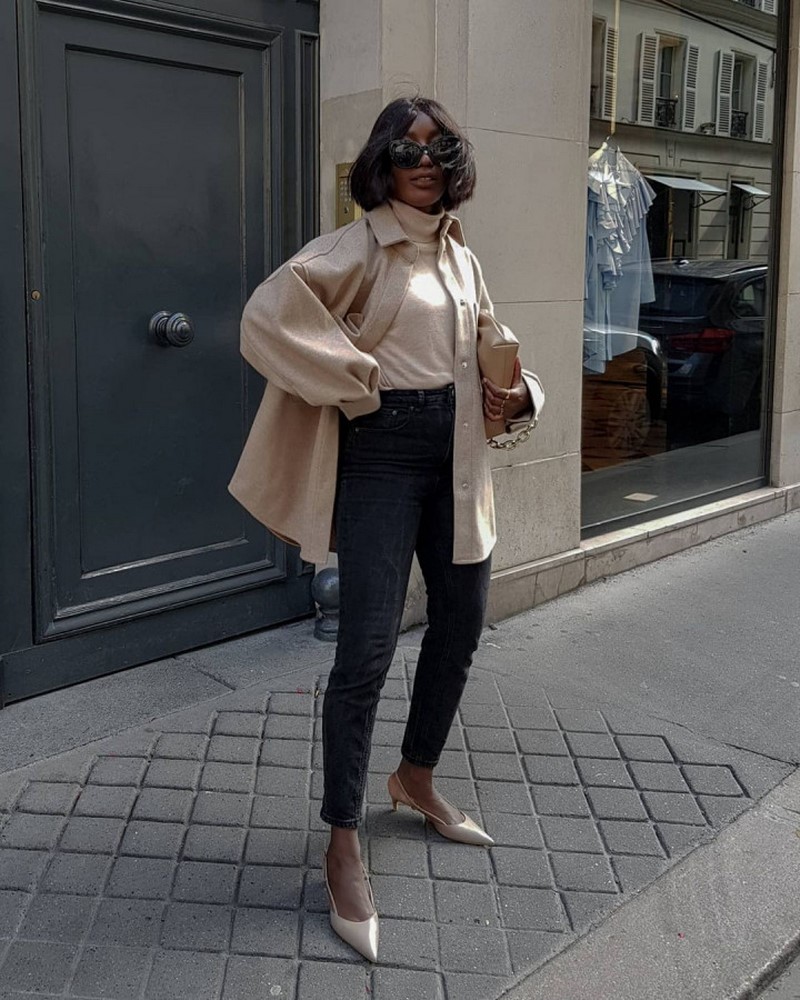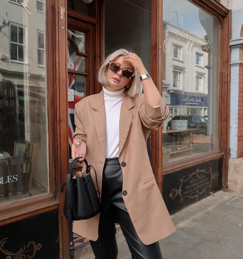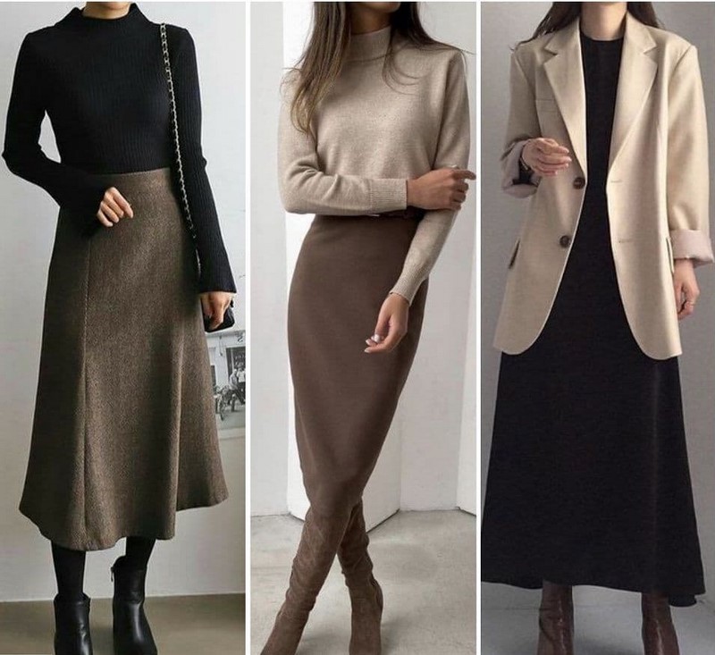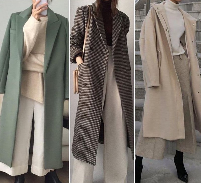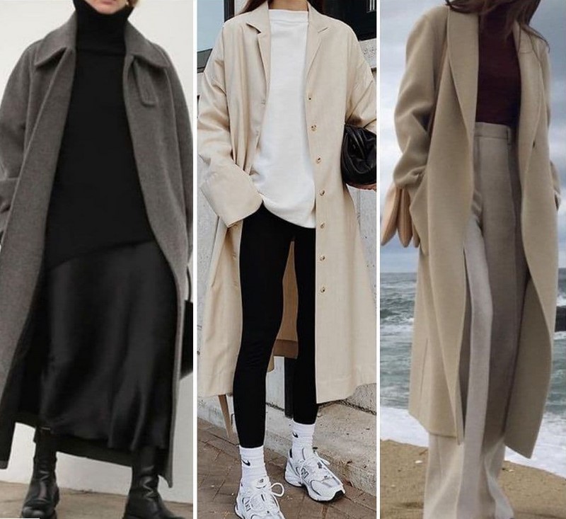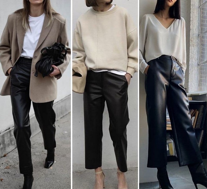 | Теплі, затишні, з хорошим складом джемпери, светри, світшоти, поло, толстовки вільного крою базових кольорів | Пальто-халат, оверсайз пальто двобортного крою, пальто-сорочка середнього та максі крою тренчі міді та максі крою | Шкіряні штани, сукні, спідниці, піджаки, ідеальні для вас за силуетом — бежеві, чорні, коричневі, мокко, хакі і т.д. |