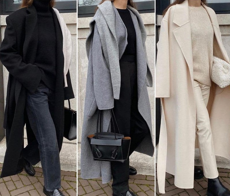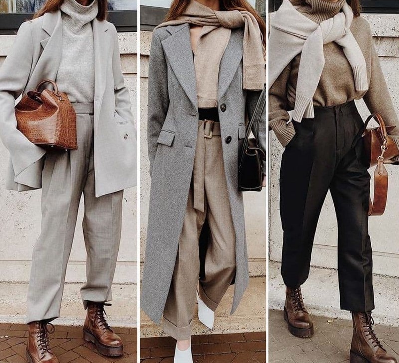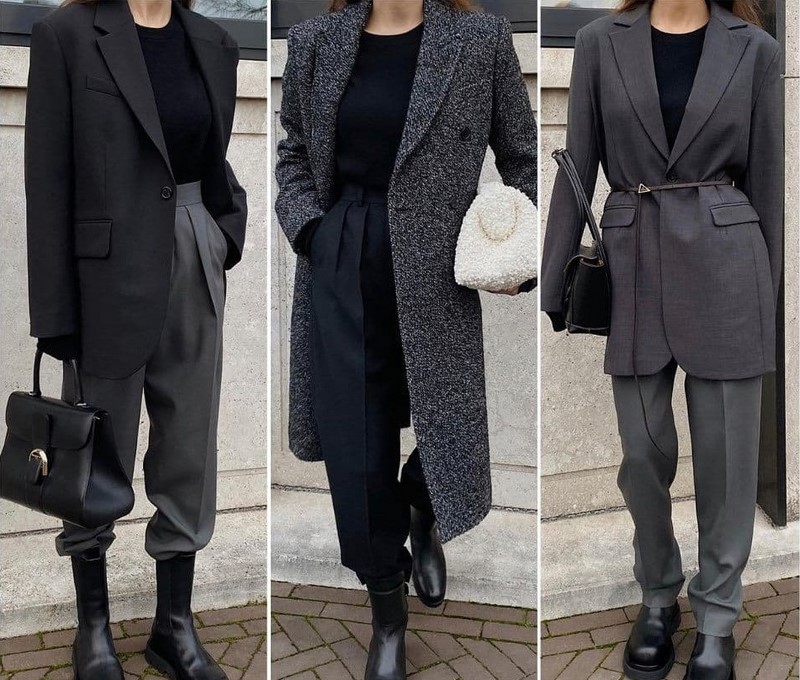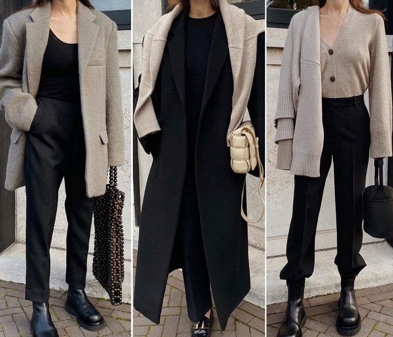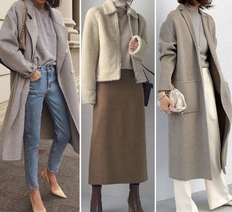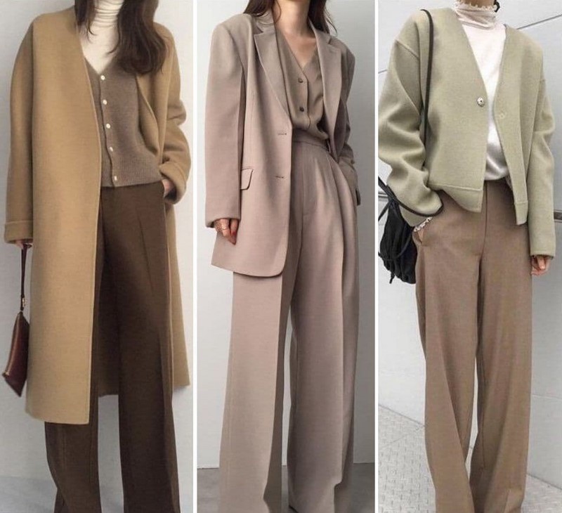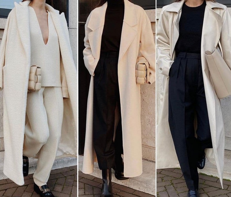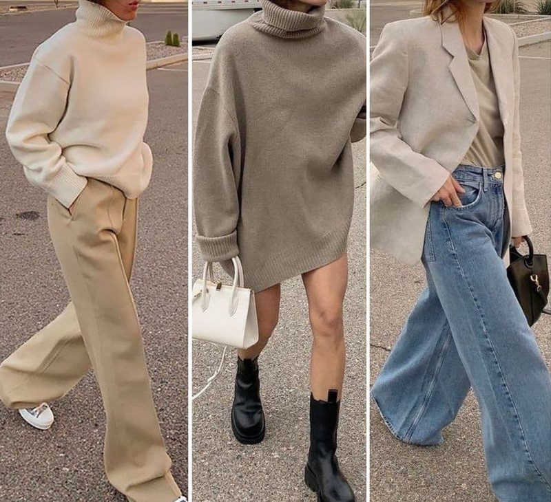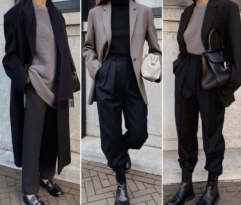 Одяг у стилі мінімалізм, заснований на базових та нейтральних відтінках, дозволяє створювати найкрасивіші контрастні комплекти, мінімалістичні образи у споріднених відтінках, тотал луки.