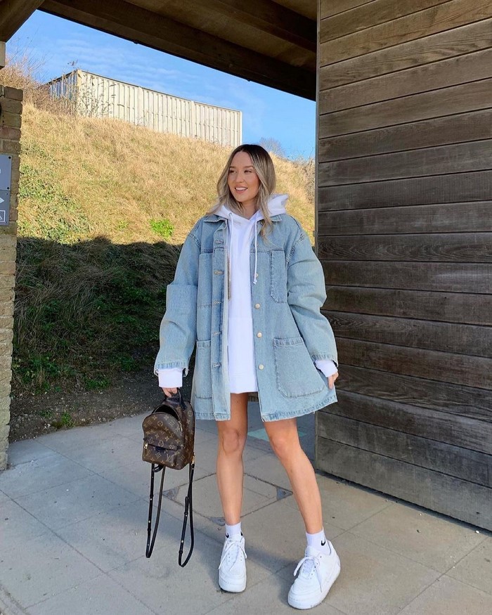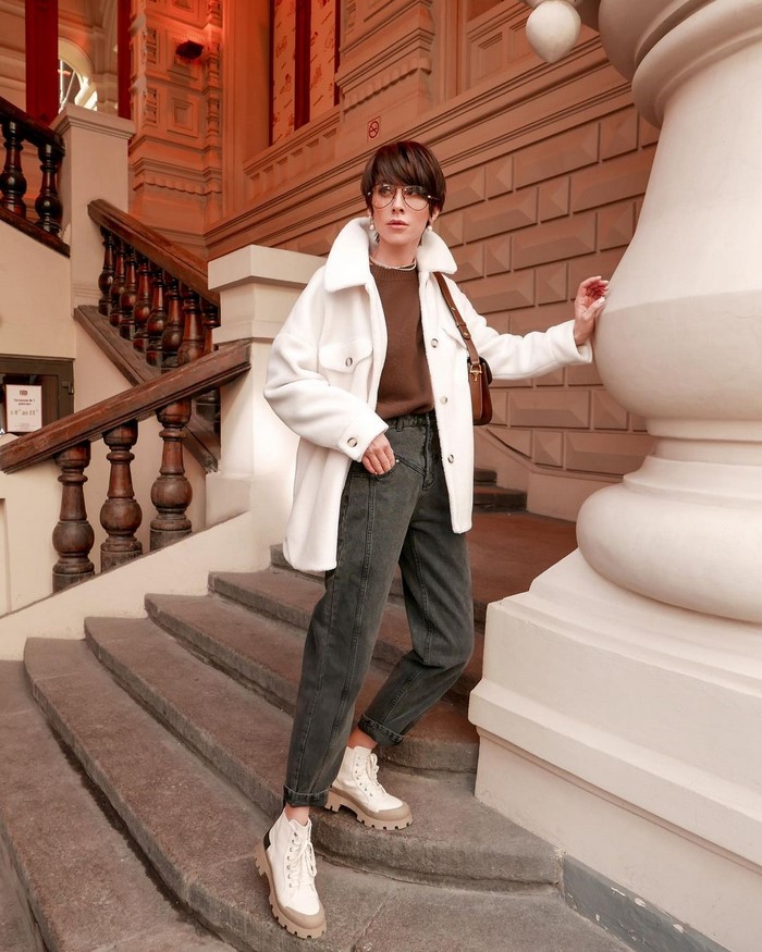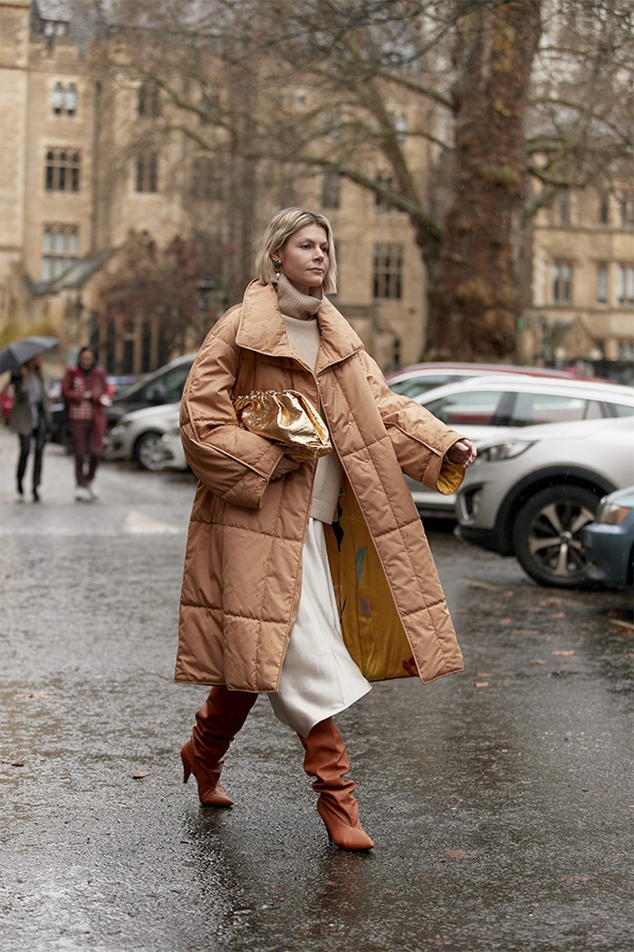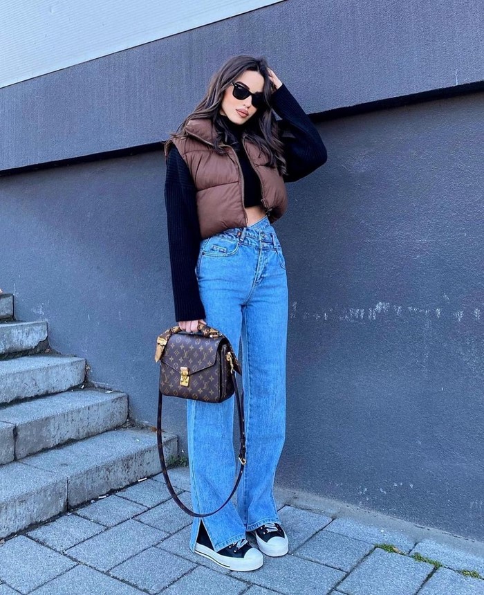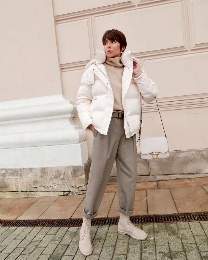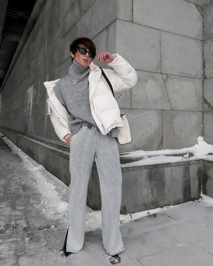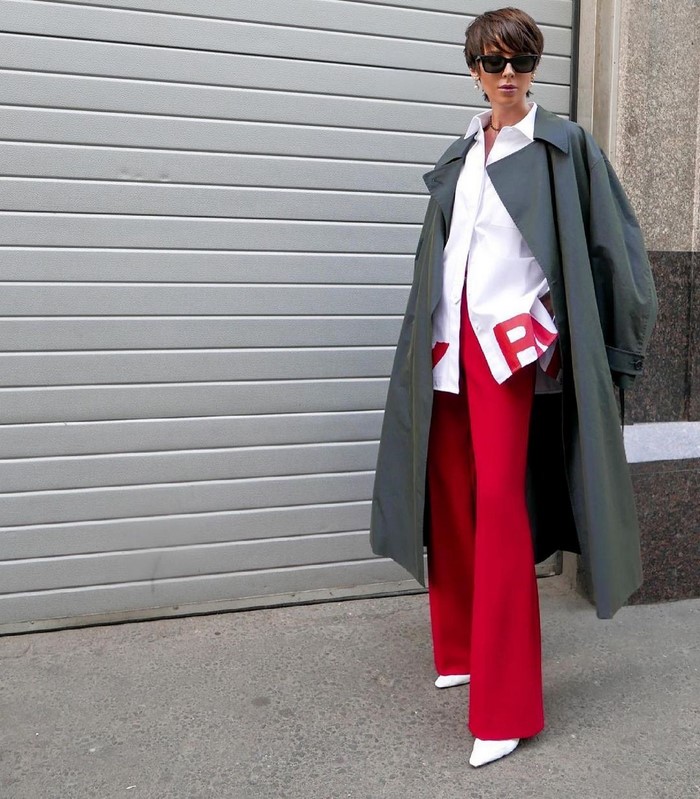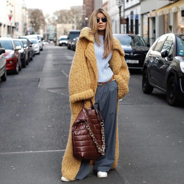 Об’ємний верхній одяг, наприклад, тренч, дута курточка, максі пуховик, бомбер, джинсування, вільні по крою піджаки, в’язані кардигани у фасонах оверсайз зробить ваш вуличний лук динамічним і непересічним, дозволяючи грати з формами і структурами.