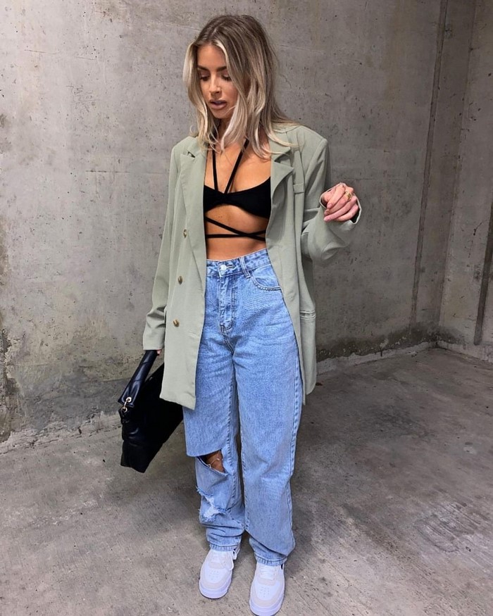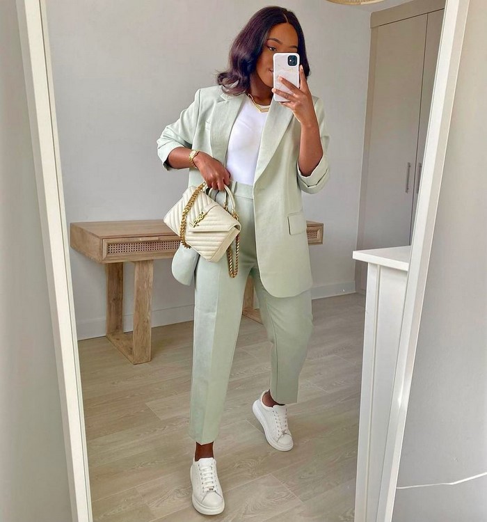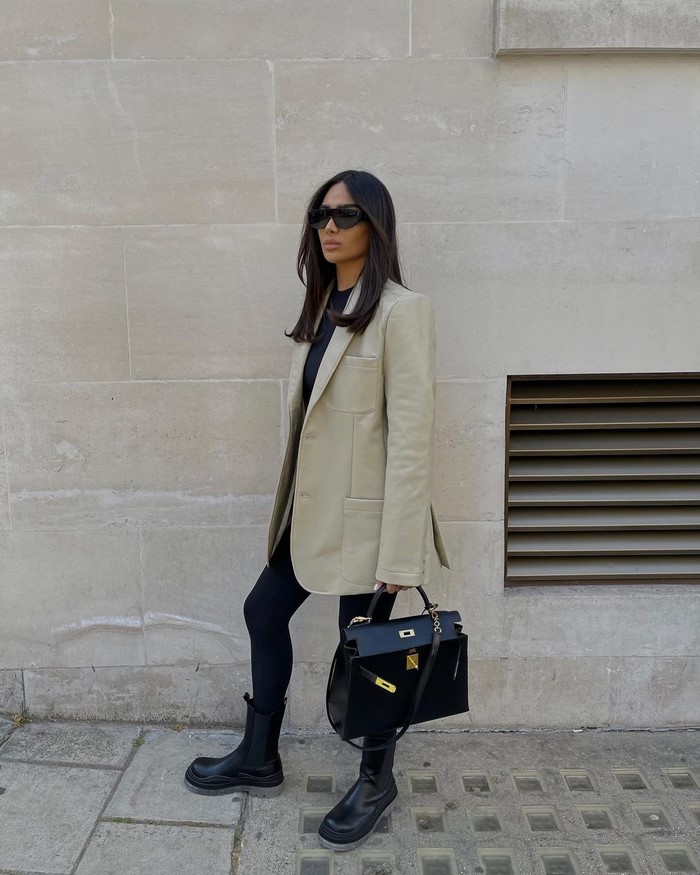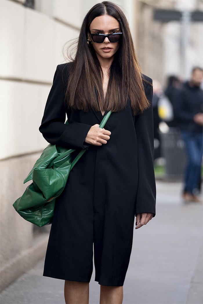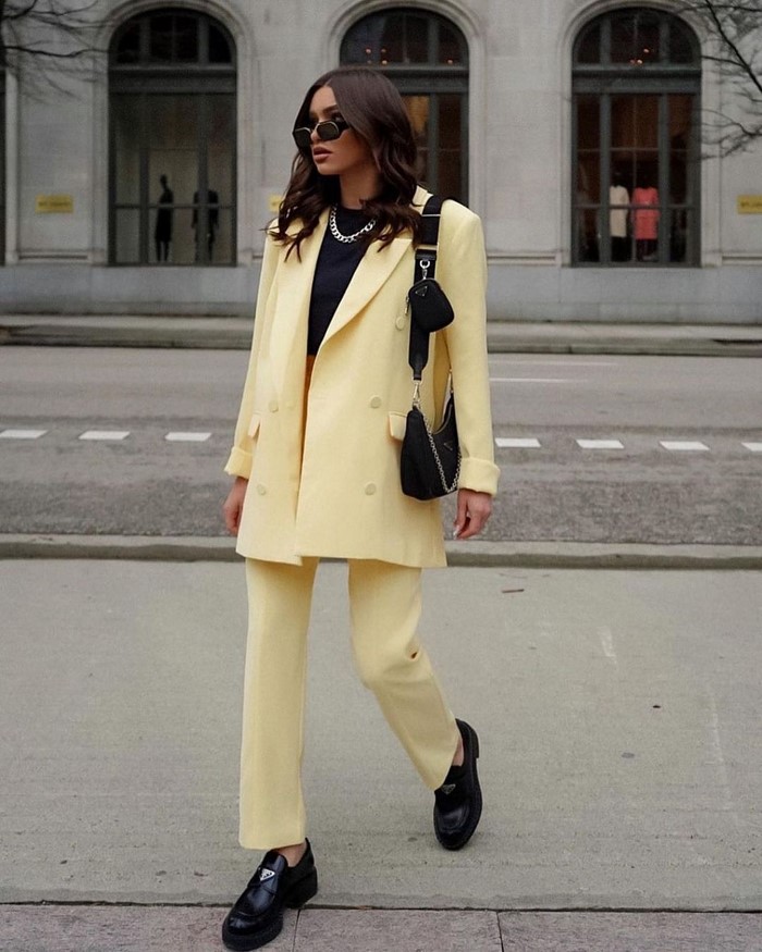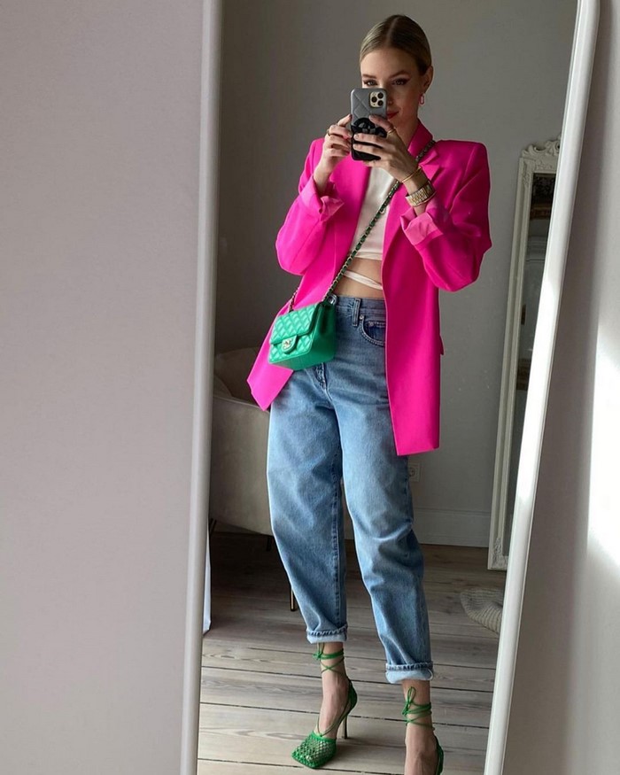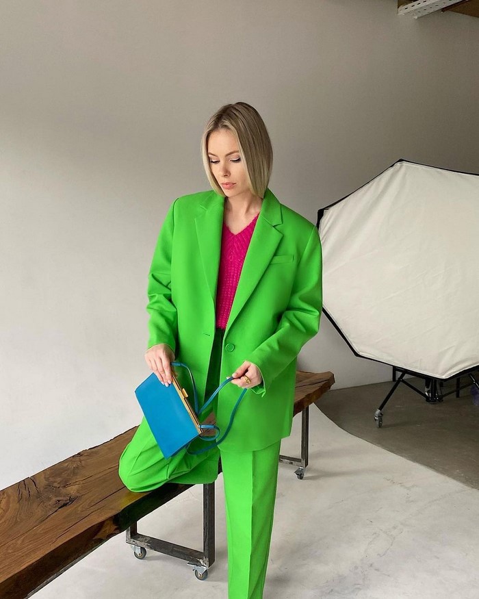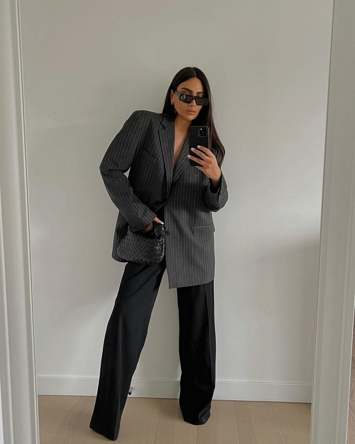 На весну-літо вибираємо світлий вільний піджак. У сезоні осінь-зима віддаємо перевагу чорному блейзеру вільного крою.