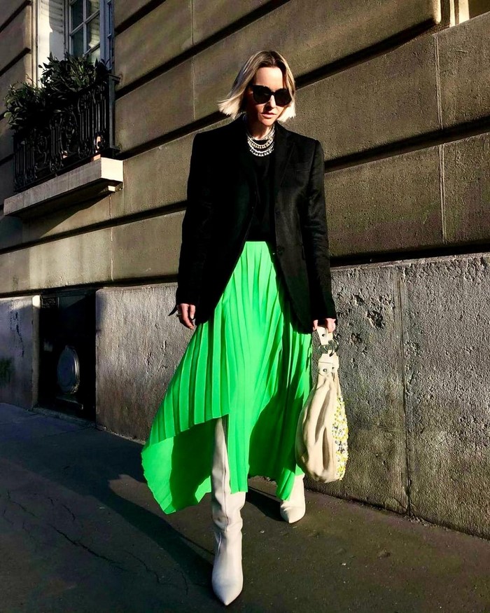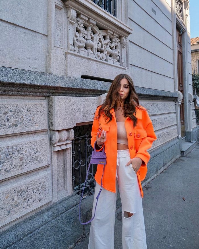 Ви завжди можете скласти вуличні луки в трендових відтінках сезону, віддавши перевагу жовтому, сірому, зеленому, марсаловому, вишневому, блакитному, рожевому, смарагдовому, бежевому, ліловому, помаранчевому та інших відтінках.
