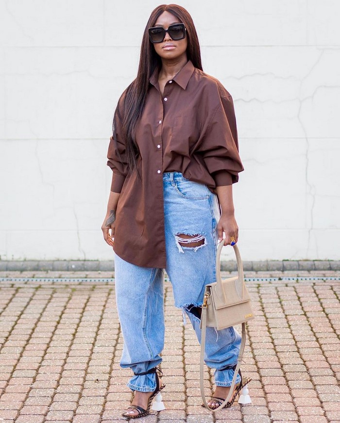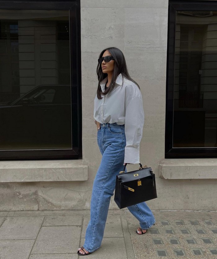 Вуличний гардероб обов’язково поповнюємо подовженою сорочкою. Вибираємо сорочку в улюбленому кольорі, але із щільної тканини, щоб вона виглядала структурно. Вибирайте коттонову, лляну — не помилитеся.